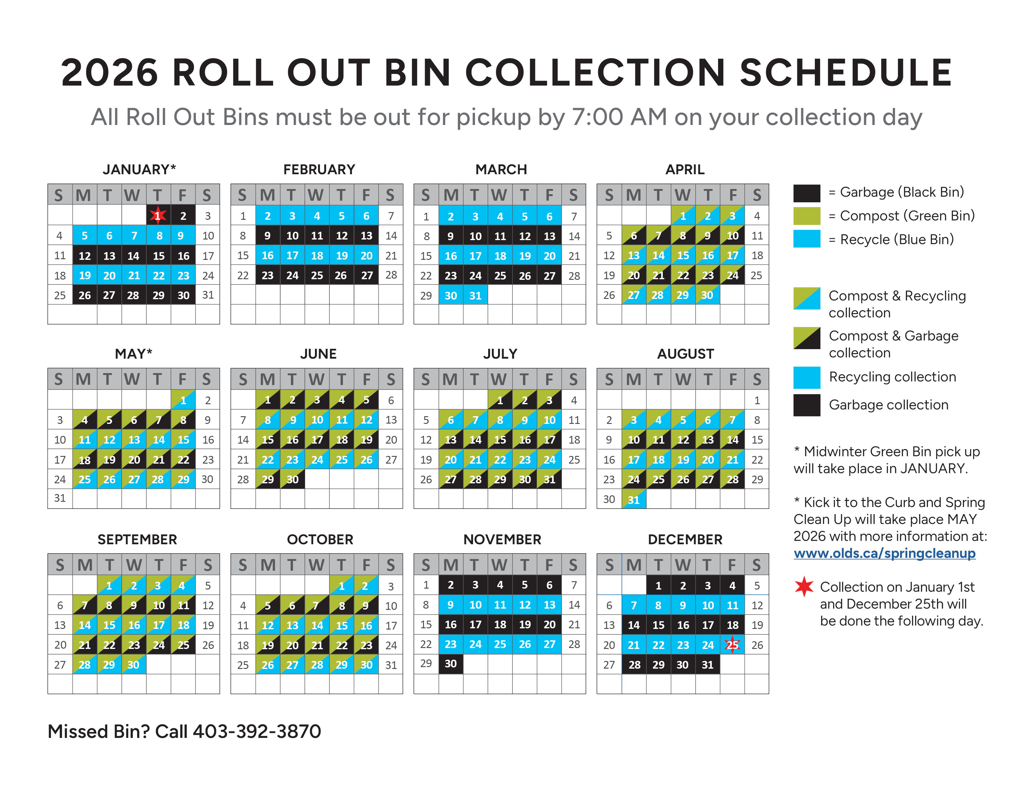 Call 403-507-4820 or email utilities@olds.ca to order your bin.