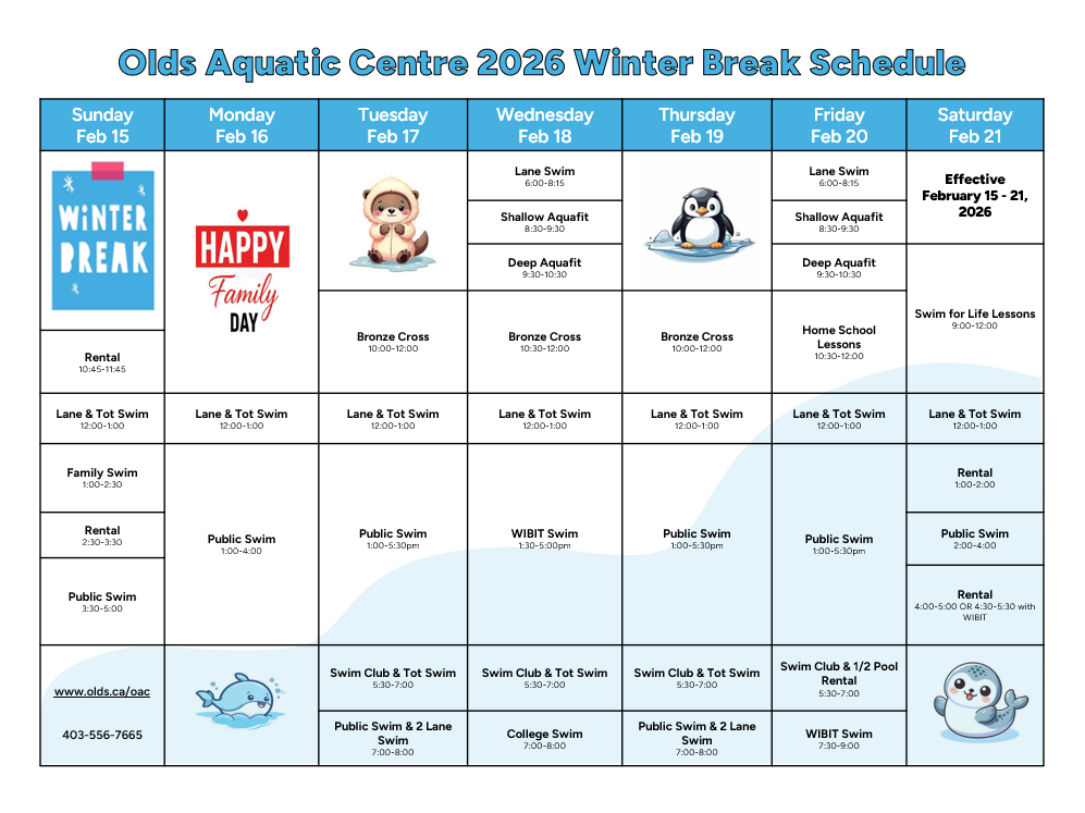 Open with Reduced Hours February 16th - 12-1pm Lane & Tot Swim and 1-4pm Public Swim