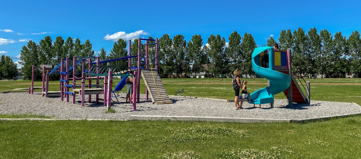 Richards Crescent playground was constructed by the Kiwanis Club of Olds. The playground is designed for children aged 5 to 12 years old.